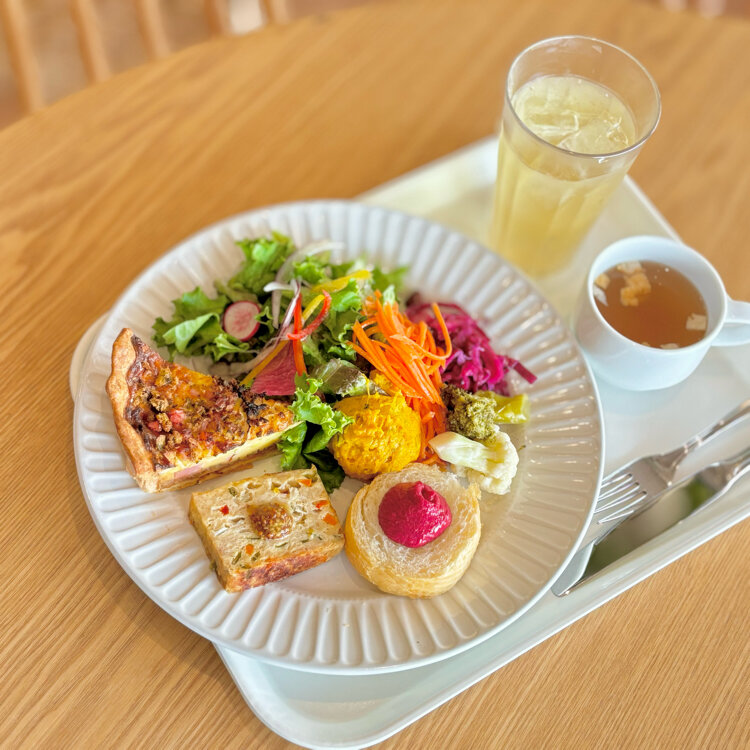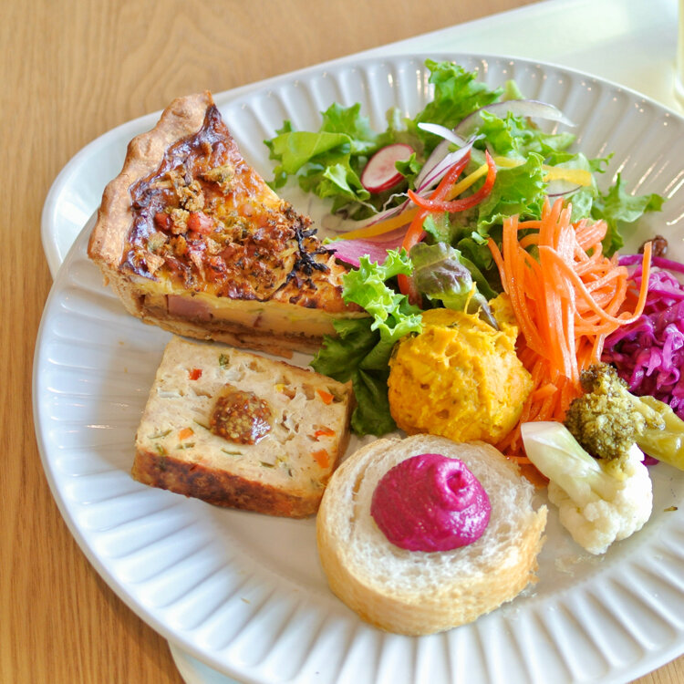 日替わりのキッシュ・サラダ・ミートローフ・人参のラペ・野菜のマリネ・パン・スープ付き