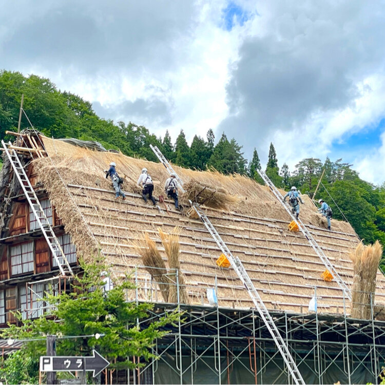 白川郷を訪れた日、屋根の茅を葺き替えているお店がありました。 6月とはいえ暑い日で、高所での作業。 こういう苦労があって、あの景色が保たれているんだなあ。 そして白川郷への入口でもある橋、であい橋は頑丈で大きな橋なのに間に支えがなく、吊り橋形式。 どうやって掛かってるのかな〜? と、建築に思いを馳せた日でもありました。