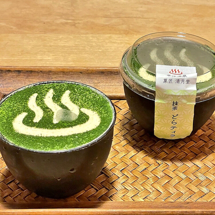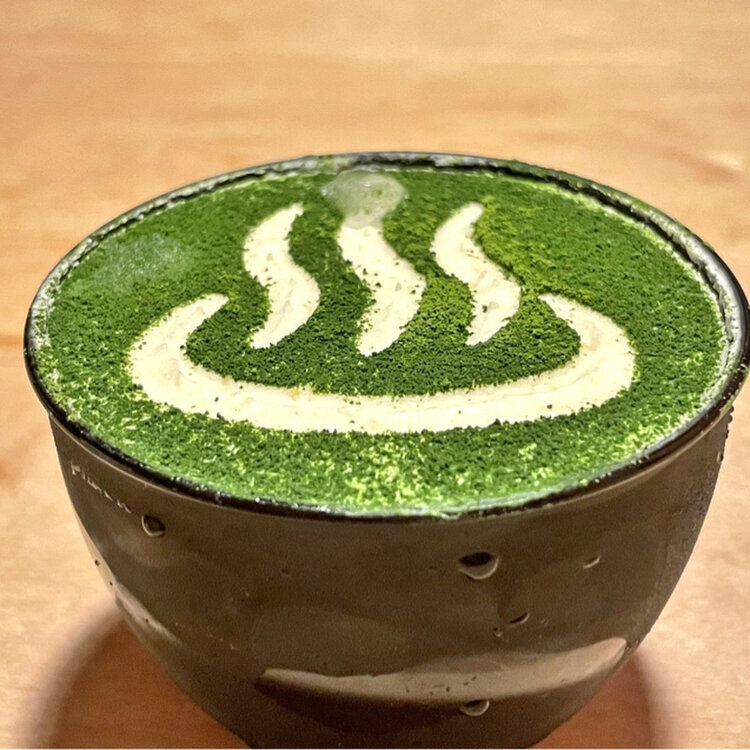 抹茶で描いた可愛い温泉マークも、持ち運びしても形崩れしない絶妙な量を導き出して振ってあるそうです。