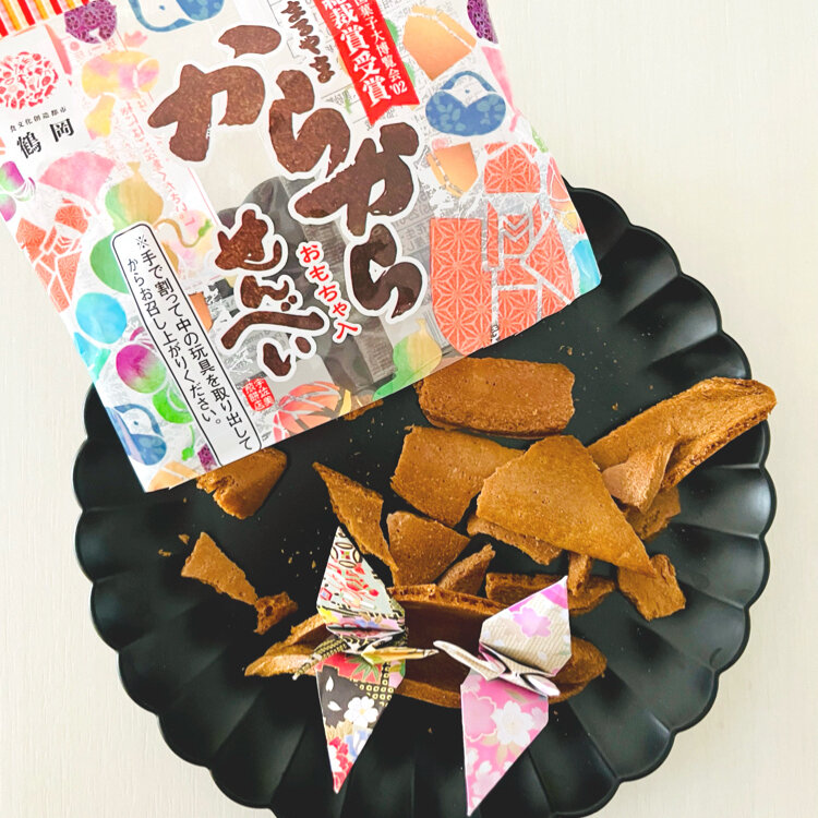 #ことりっぷ旅2024 #山形#鶴岡#お土産#からからせんべい#宇佐美煎餅店#おもちゃ入り#せんべい#1個200円#おもちゃは約150種類もあるそうです