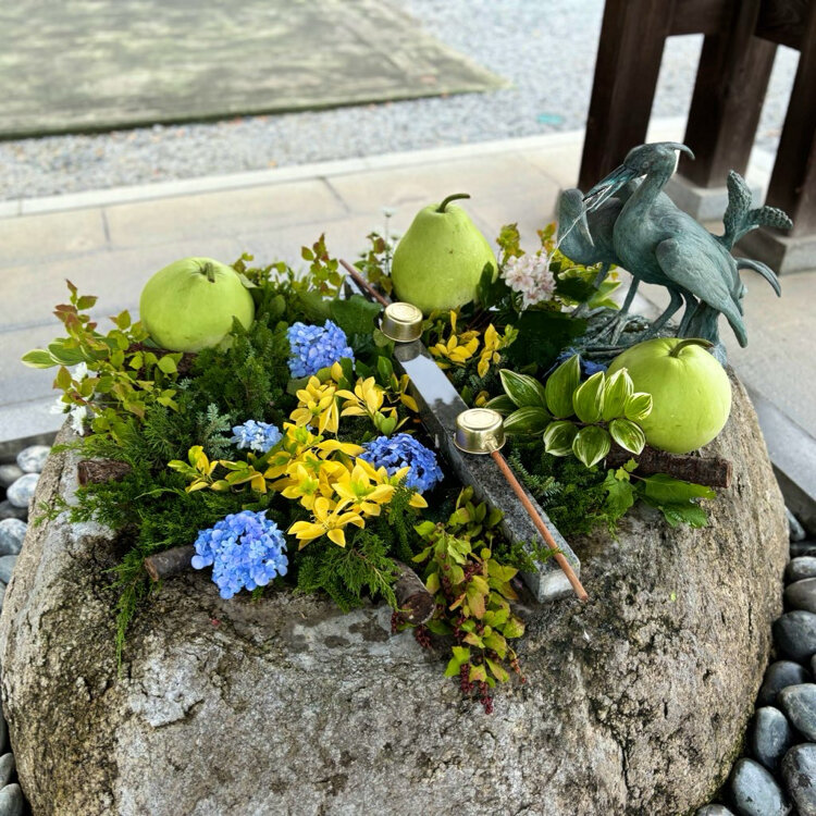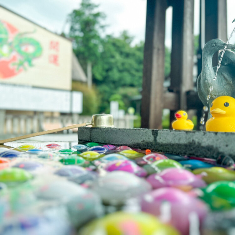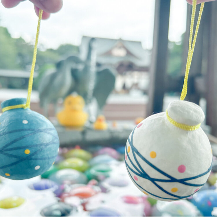 夏の手水舎はお祭りのヨーヨーで溢れてました🫧