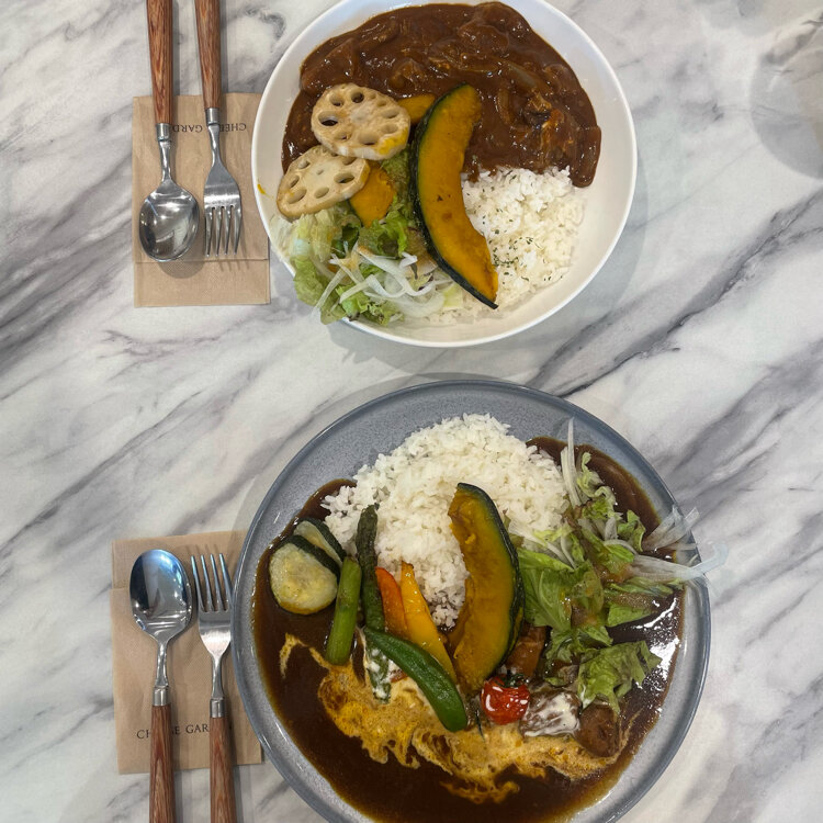 『チーズスパイスチキンカレー(グリル野菜)』と秋限定かのかな?『ハッシュドビーフ』を注文しました。