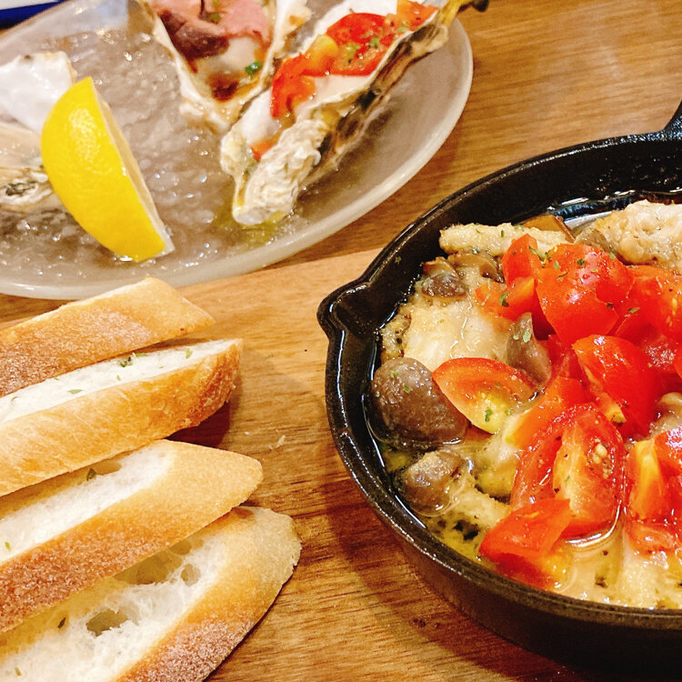 牡蠣は生、焼き、フライの他に炊き込みご飯や鍋、アヒージョでも楽しむことができ生牡蠣は一つから注文可能!