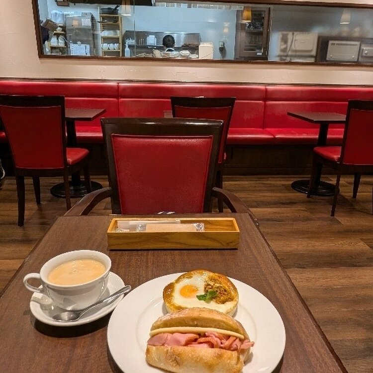 カフェ併設でお好みのパンとドリンクやスープとセットで