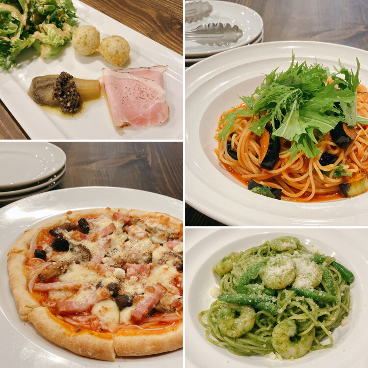 私たちは3人で来店し、Bセットを注文。ピザ1枚とパスタ2種類をシェアしていただきました。