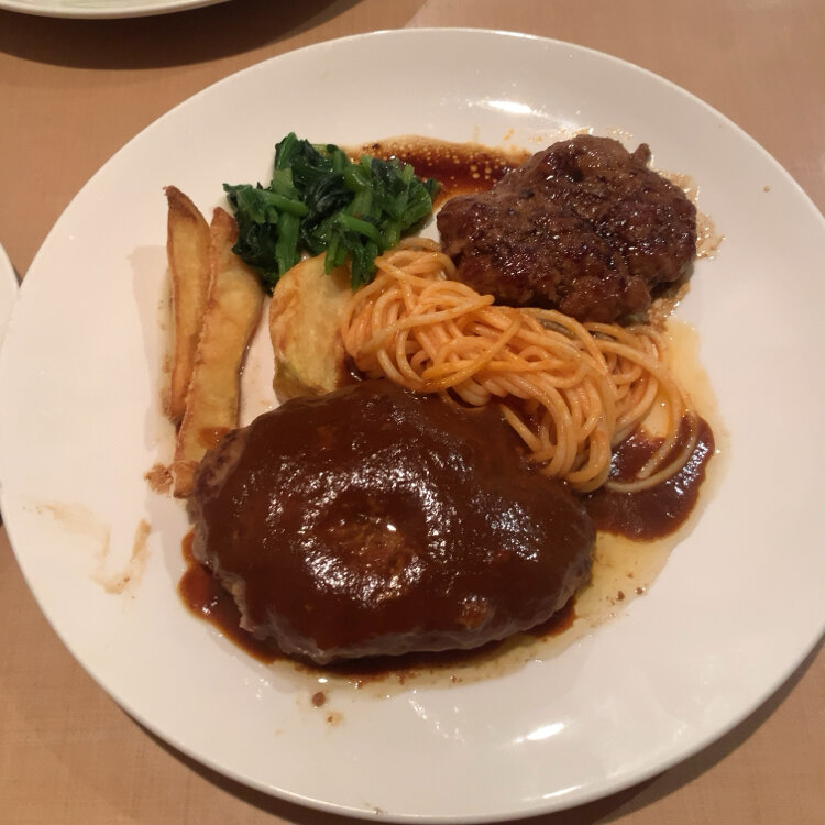 洋食 八坪亭 今日はトマトラーメンを作る気で材料買ってきたのに😅 仕事帰ってきてTV見てたらハンバーグの特集があっててすっかり口がハンバーグになってしまった…🫣 博多阪急にも行かなやったけん、という理由を作って……😅外出たついでにこの時間に開いてる洋食屋さんを探して行ってきた🙌🏻 おじいちゃんが1人で1つずつ丁寧に作ってくれる🥹🙏🏻✨ メニューも充実✨そして良心的な価格🙏🏻✨ 👛現金のみ