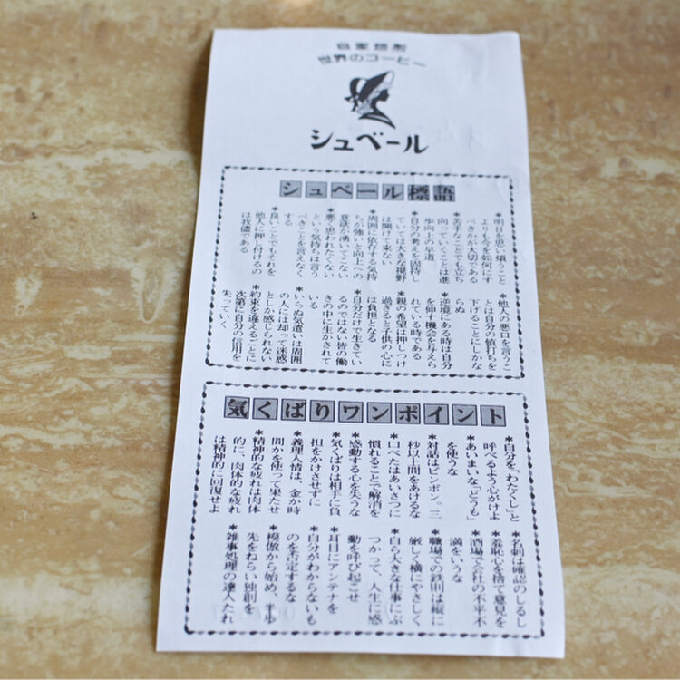 レシート裏の、シュベール標語&