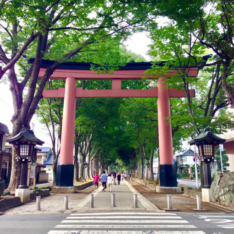 「一の鳥居」「二の鳥居」「三の鳥居」のうち、二の鳥居は明治神宮より寄贈移築されたもので高さが13mもあって現存する木造の鳥居では関東でも屈指の大きさを誇ります。