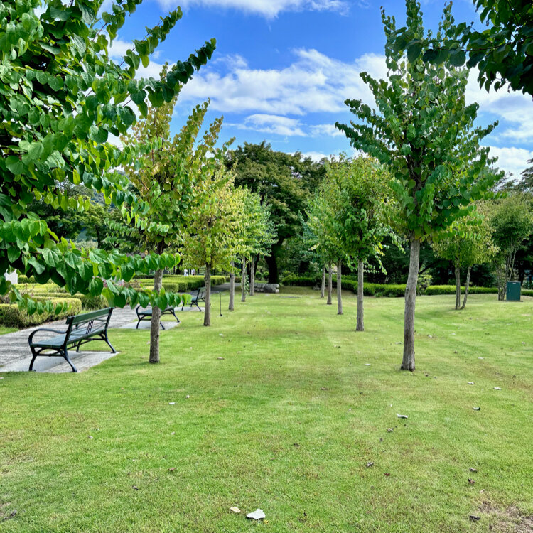 公園は緑豊かで地元の方が犬の散歩などに訪れのんびりした雰囲気。
