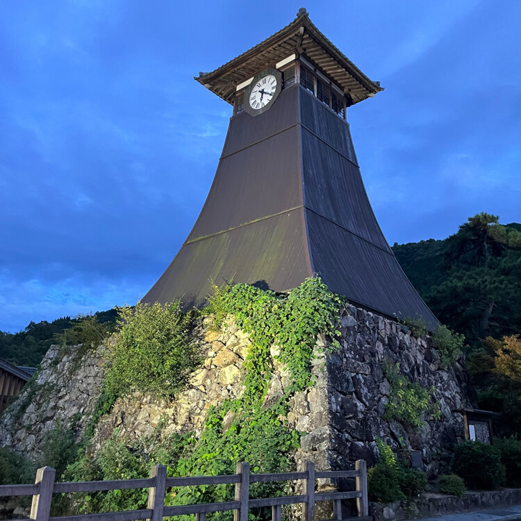 辰鼓楼は、廃城となった出石城三の丸大手門石垣を利用して、明治4年に建設されました。