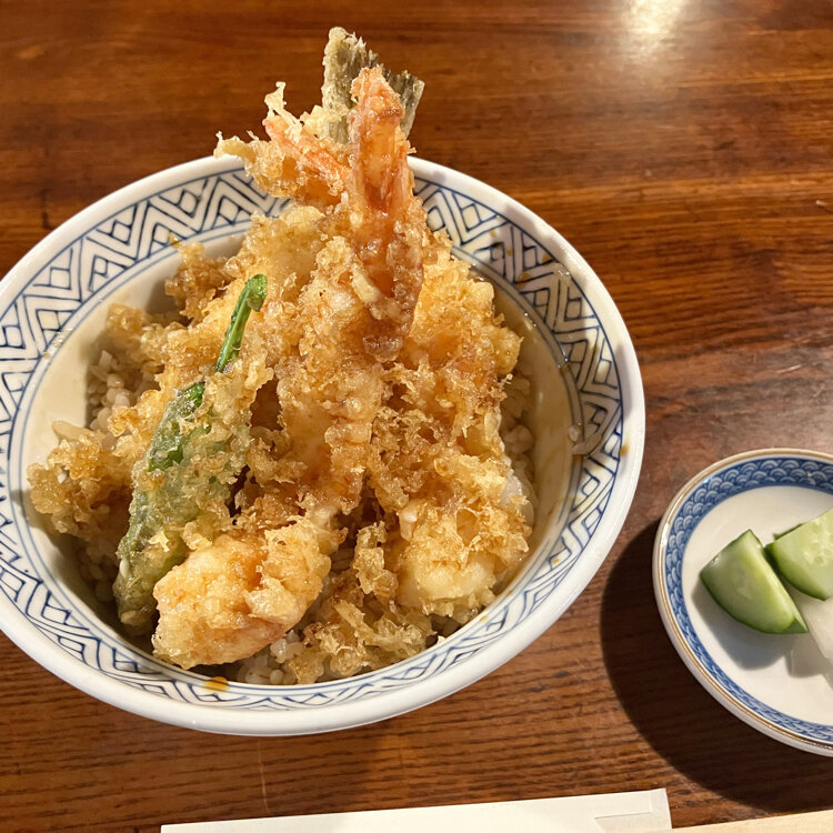 途中で離団して近くにある土手の伊勢屋の天丼を食べるべく、列に並びました。2時間待って中に入ると文化財登録された歴史ある建物で、年代ものの柱時計が素敵でした。