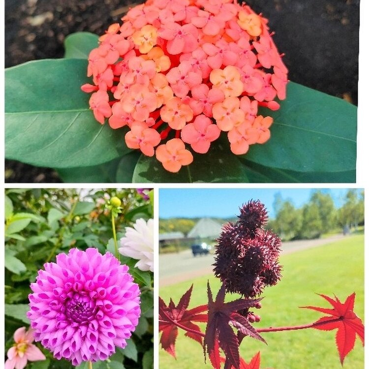 トウゴマ…イガイガの実も葉も赤く紅葉🍁