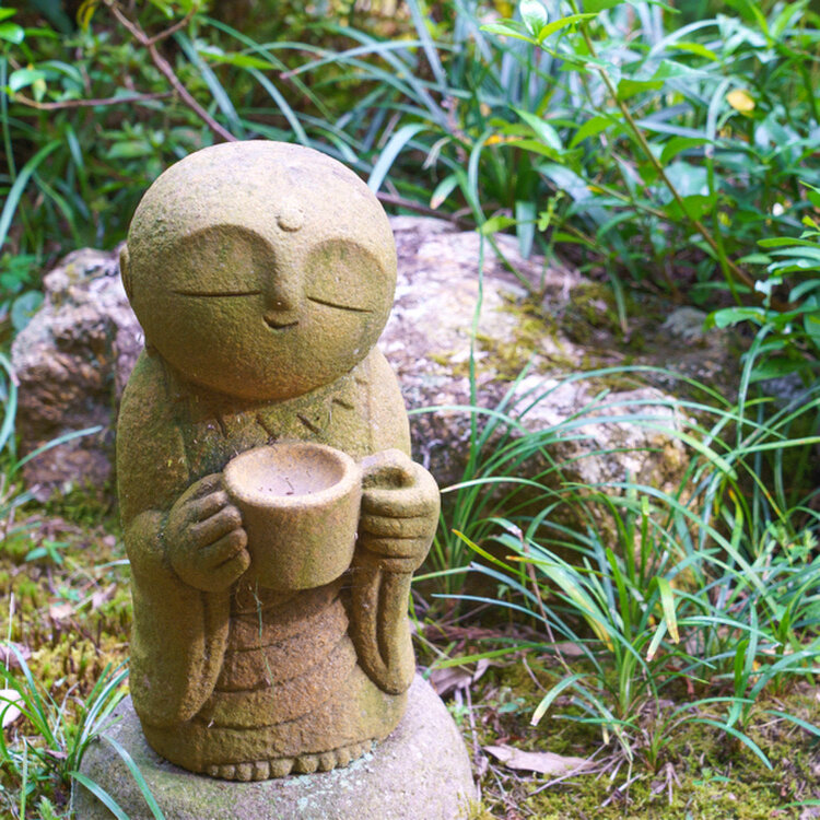 青紅葉が添えられ、にっこり顔のお地蔵さんが可愛い♡