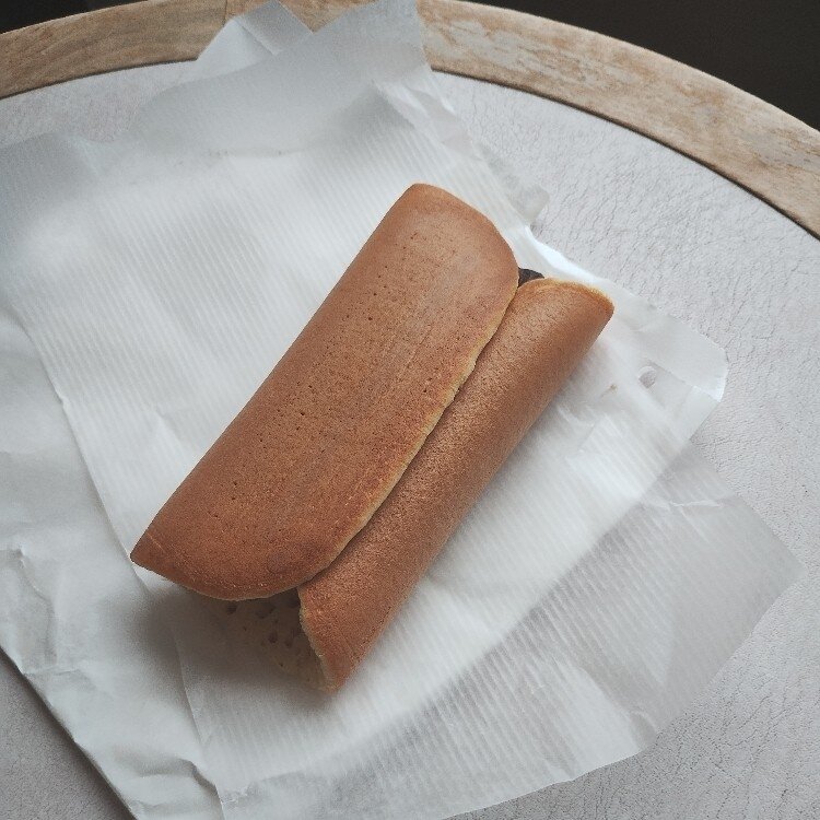小麦粉を伸ばして焼いた生地であんこを巻いたお菓子です。
