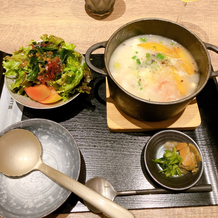 オーダーしたのは、ズワイ蟹、ローストポテト、モッツァレラチーズの雑炊定食です🦀🥔🧀