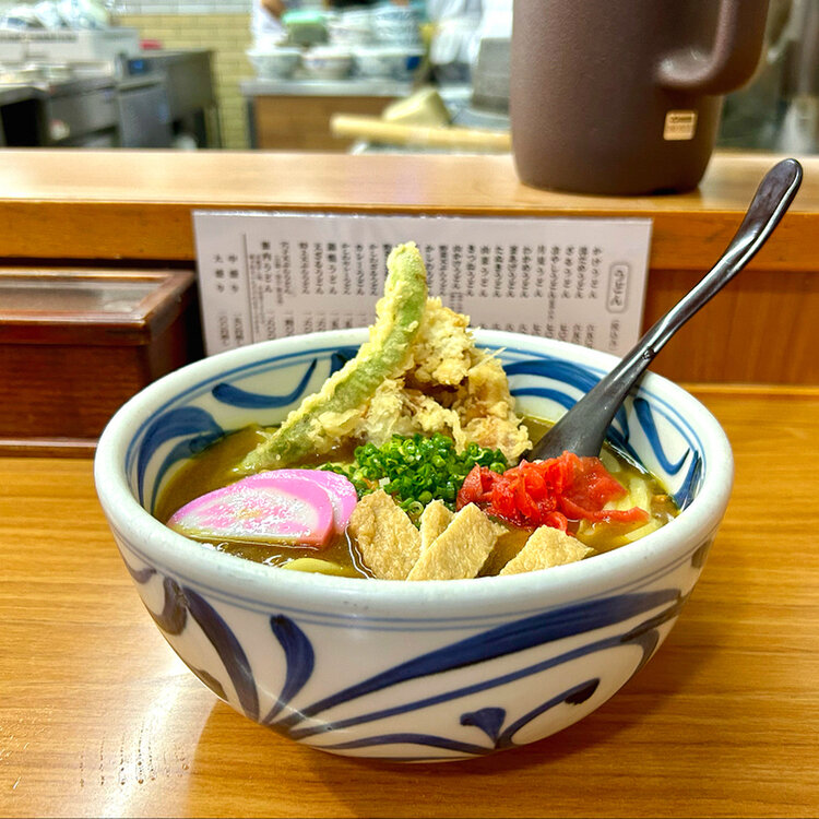 の上に、大きなかしわ天がのった「かしわ天カレーうどん」。これが人気の絶品カレーうどんです。週末夕方、行列ができていました。待っている間に、何を頼もうと考えて決めたはずでしたが、結局みんなでかしわ天カレーうどんを注文しました(笑)待っている間、お客さんがそれぞれおでんをお皿に入れているのを見ては、大きいこんにゃく串、ゆで卵串の上には小さなこんにゃくがちょこん、もぅ、食べたい気持ちが振り切ってしまってました↑でも、頼まなくて良かったと思うぐらいボリューム満点のカレーうどんに大満足☺️かしわ天も美味しすぎでした🎵さぬきうどんのお店は早い時間に終わる店が多い中遅い時間まで開いてるありがたいお店、そして、カウンターに座ると目の前でうどんを打っている姿を見ることができて、より食べたい気持ちが振り切っちゃいます🎵