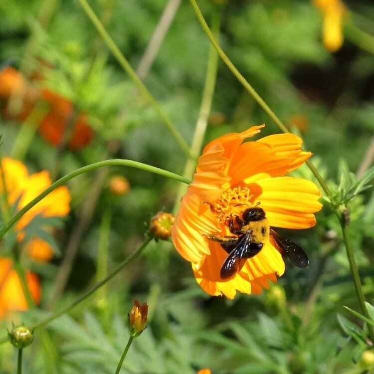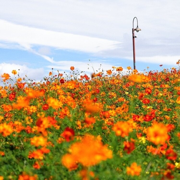 fumitubuさん こんばんは わ~!嬉しいコメントありがとうございます😊❤ 私が訪れた日は、風が吹いていて、雲が多めでしたが それが良かった😆👍 揺れるコスモスって、秋って感じよね🧡 雲もいい演出👏 鹿児島は、昼間はまだまだ30℃近くて、 歩くと汗だくになりますが💦 クマバチのもふもふのファーベストが可愛くて つい撮ってしまいます🐝📸🤭