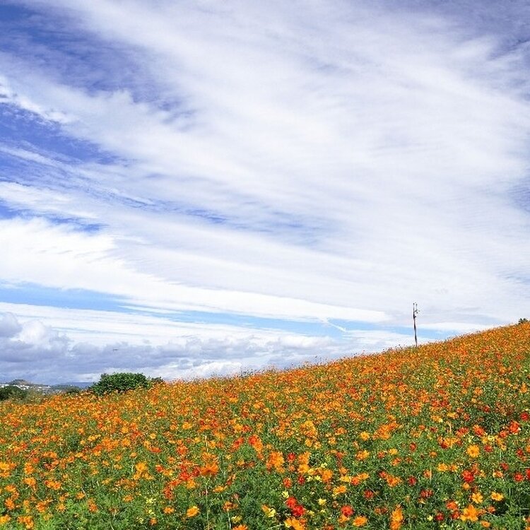 まるこさん こちらにもコメントありがとうございます😊 毎年恒例のこの場所ですが、斜面に咲き誇る キバナコスモスは、何度見てもステキです🧡💛 雲もいい感じですよね😍 景色は涼しげですが、鹿児島はまだまだ暑くて 散策後は汗だくでした💦 それでも楽しくて、あちこち歩き回りましたよ🚶‍♀️