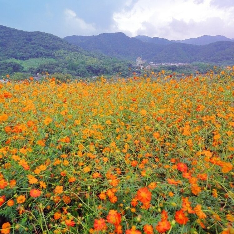 錦江湾公園のキバナコスモス 満開🧡💛 毎年見に行きたくなる風景😊 癒されます😍 風で波のように揺れるコスモス達が とても可愛かったです・:*:・(*˘︶˘*).。*♡・:*:・ 2024.10📸 #錦江湾公園 #キバナコスモス #鹿児島風景 #秋の彩り #鹿児島市