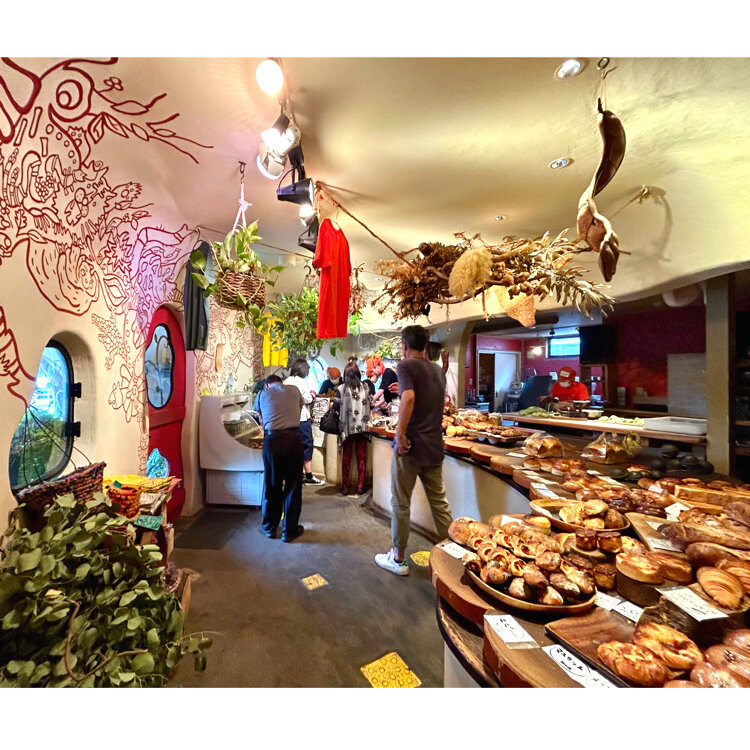 四国八十八ヶ所霊場第51番札所石手寺から車で3分、街中にありました。ジブリの世界観、不思議の国のアリスの中に迷い込んだような、非日常な店内、たくさんの種類のパンが並び、お店の方達は笑顔で元気いっぱい、思った以上に素敵なお店でした☺️