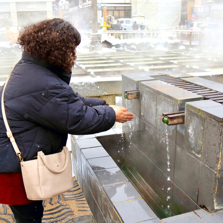 この日は昼間でも−6度くらいで本当に寒かったですが、湯煙と硫黄の匂いの立ち込める湯畑は気分を盛り上げてくれました。