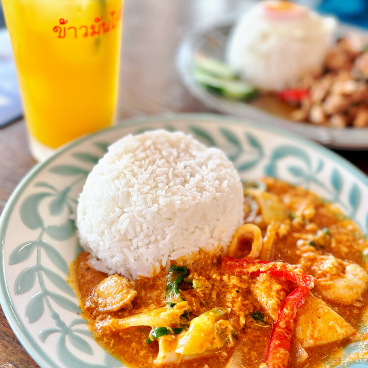 月替わりシーフード🦐パッポンカリー 🍛❣️思ったより辛くなくて不思議な甘さがちょこっとあるエビ入リフレクションカレーでした❣️