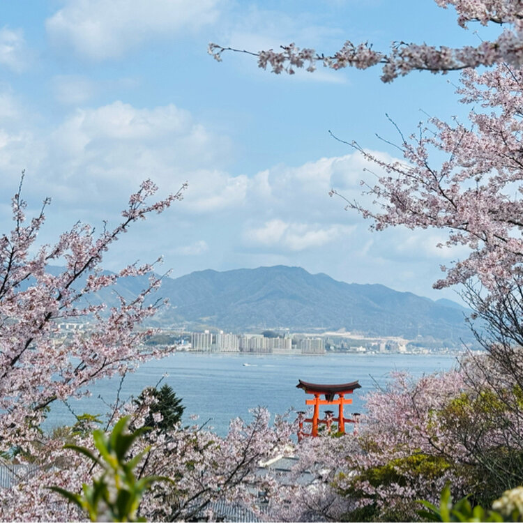 *宮島の桜* 多宝塔近くの素敵な桜のスポット。 少し高い場所から大鳥居が見えて 春の宮島らしい景色が見えました。 #ちいさな列車旅 #私のことりっぷ旅 #桜旅 #広島桜旅2026 #日帰り旅 #ひとり旅 #電車旅 #ことりっぷ広島 #広島 #宮島 #宮島観光 #厳島神社 #大鳥居
