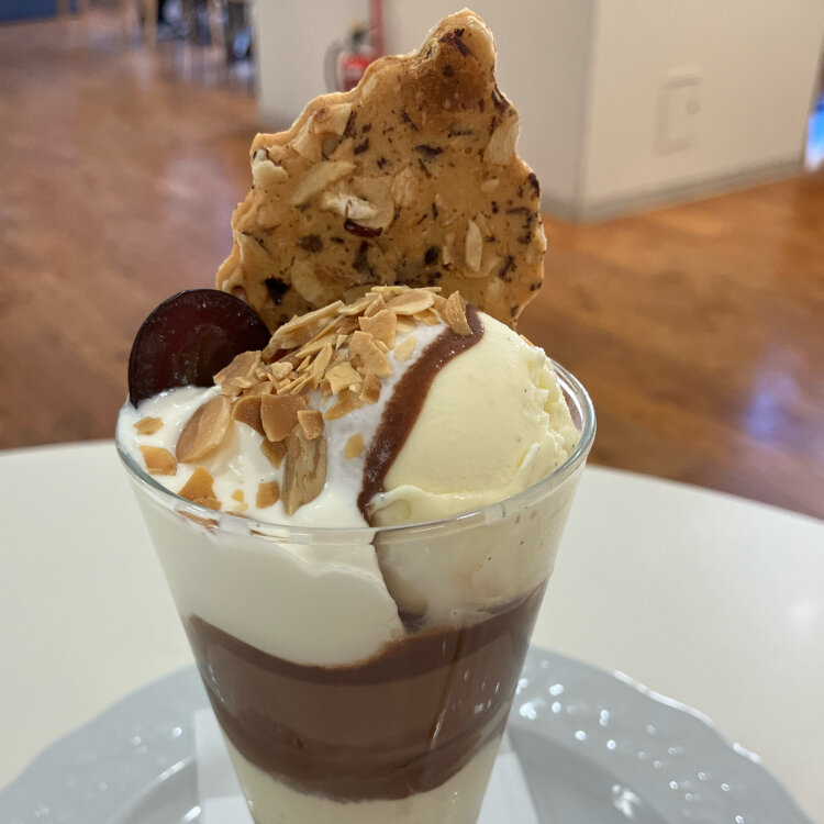 少し観光や買い物をしてから、川徳百貨店にあるカフェモロゾフでお茶をしました。モロゾフのカフェ、ありそうでないなと思って調べると、関東にはなく、盛岡の他は西日本に多く出店されているようでした。お昼をたくさん食べたのに、甘いものは別腹で、小さいサイズのチョコレートパフェと飲み物のセットにしました。チョコレートアイスかと思ったらムース仕立てなのが凝っています。デパートでよく見る木の葉型のクッキーもアイスクリームと合わせるとサクサクの食感が増して味わえる気がしました。