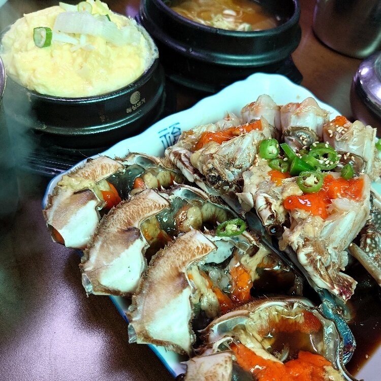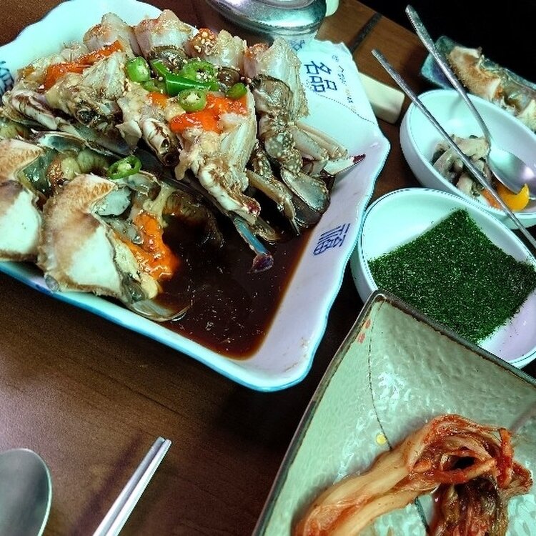 チンミ(真味)食堂さん。 初めてのカンジャンケジャンでしたが、本当においしくて、臭みもまっっったくなく、毎食食べたいくらいでした!お店の雰囲気は昔からある食堂という感じです。 とても混んでいて、韓国人の方もたくさん見えました。 また韓国へ行った際はこちらでカンジャンケジャン食べたいです!