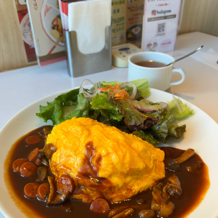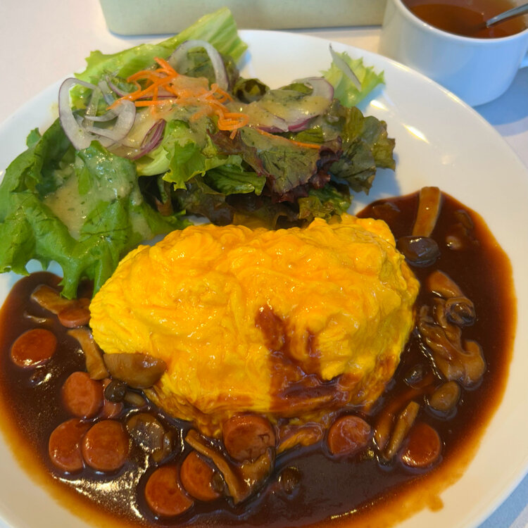 ・ソーセージときのこのデミグラスソースオムライス