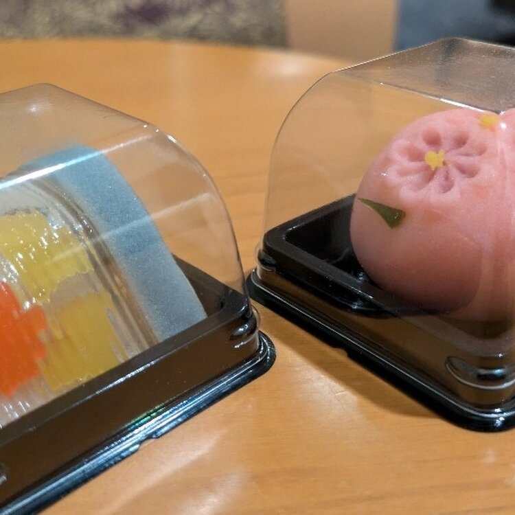 遠くに走り去りゆく金沢を眺めながら頂く和菓子もオツであった。