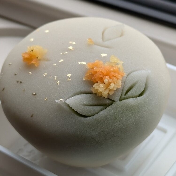金沢百番街には上生菓子を出しているお店が数店舗あり迷ったが、金木犀を模したものを見たことがなかったことと、あの魅惑の芳香を金箔で表現している様子に金沢らしさを感じて購入した。