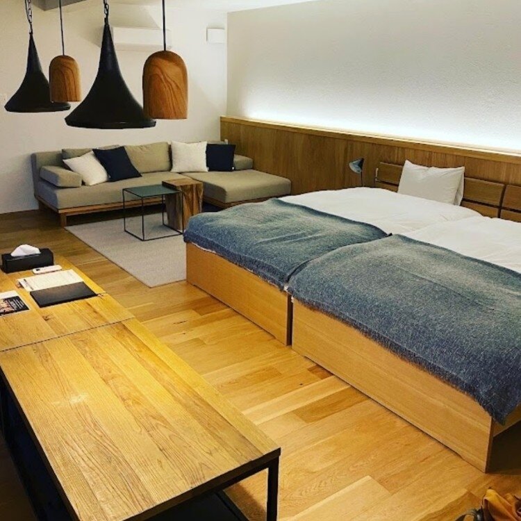 お部屋はモダンな雰囲気で、虫の音を聴きながら眠り、鳥の囀りで目覚める環境でした。