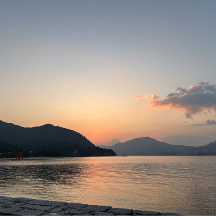 到着時の厳島神社は潮が満ち始めで、大鳥居のところまでギリギリ歩いて行けそう…という感じだったので、海に浮かぶ姿が見られるお昼過ぎに参拝することにしました!