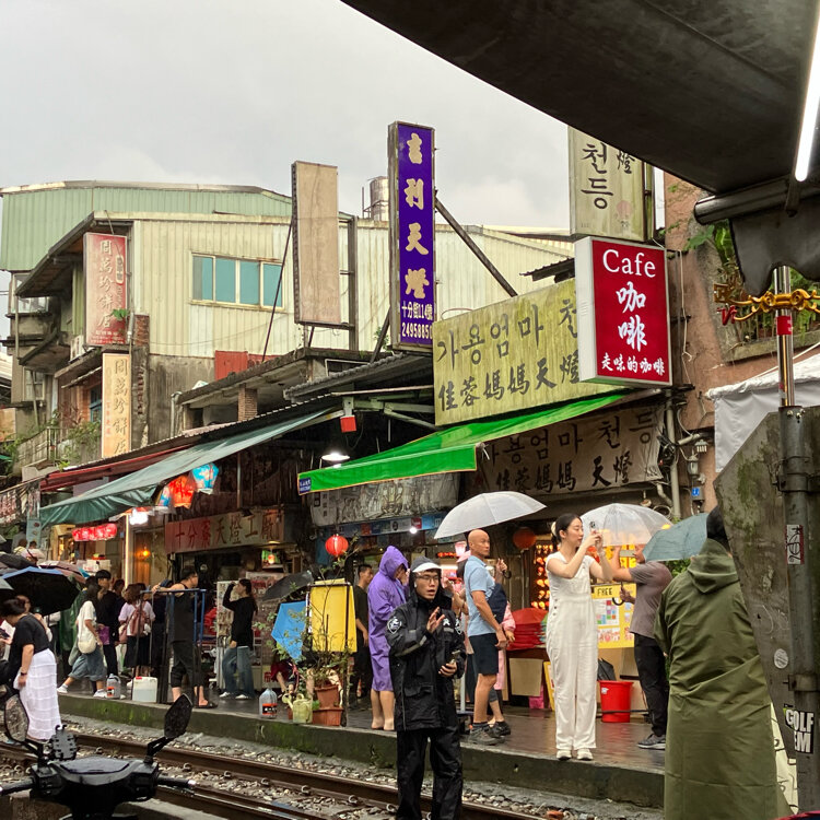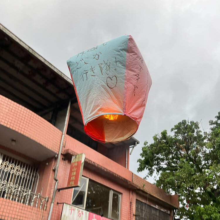 台北旅✈️ 2日目の午後は、九份、十分に行きました。 ホテルのフロントで、9人乗りの車を事前に予約。6人旅でしたので、9人乗りは助かりましたー😁 雨模様の中、まずは十分に。 私達が到着すると、雨が一時止んだ💓 十分は観光客で賑わっていました。 天燈上げにチャレンジ🎶 願い事を書くのですが、皆それぞれ自分や家族の健康などを書きました☺️ 結構楽しく盛り上がりましたよー🎶