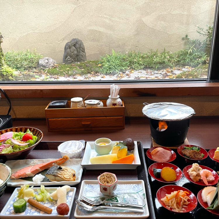 京都嵐山トリップ19 京都 嵐山温泉 花伝抄 おはようございます こちらはビュッフェの朝食ではなく定食スタイルでした しかも豪華✨ 美味しくいただきました🤤 今朝は昨日と打って変わって爽やかな秋らしいお天気です 今日はこれから鈴虫寺と西芳寺さんへ✨