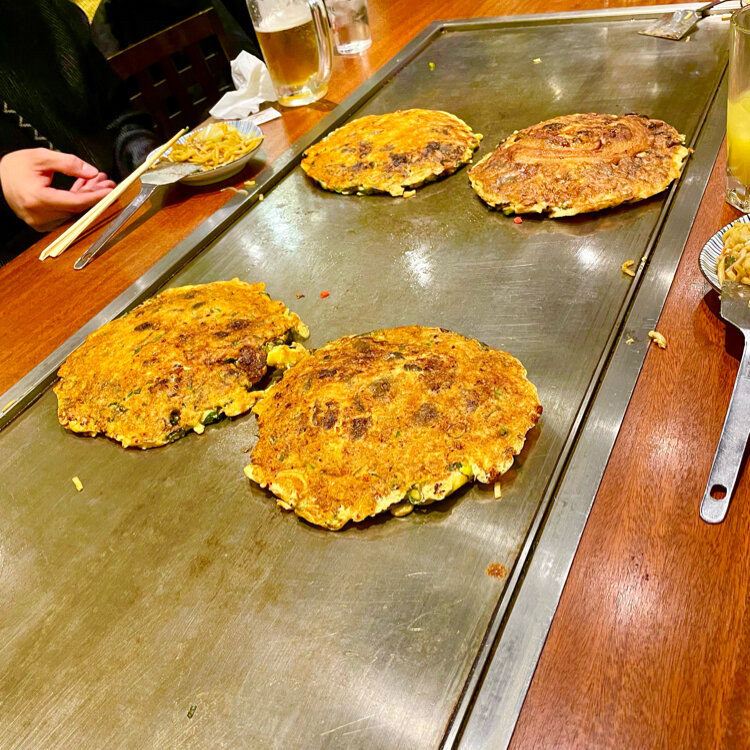 そして鉄板から頂くねぎ焼きもお好み焼きもあれもこれも、みんな美味しかったです。