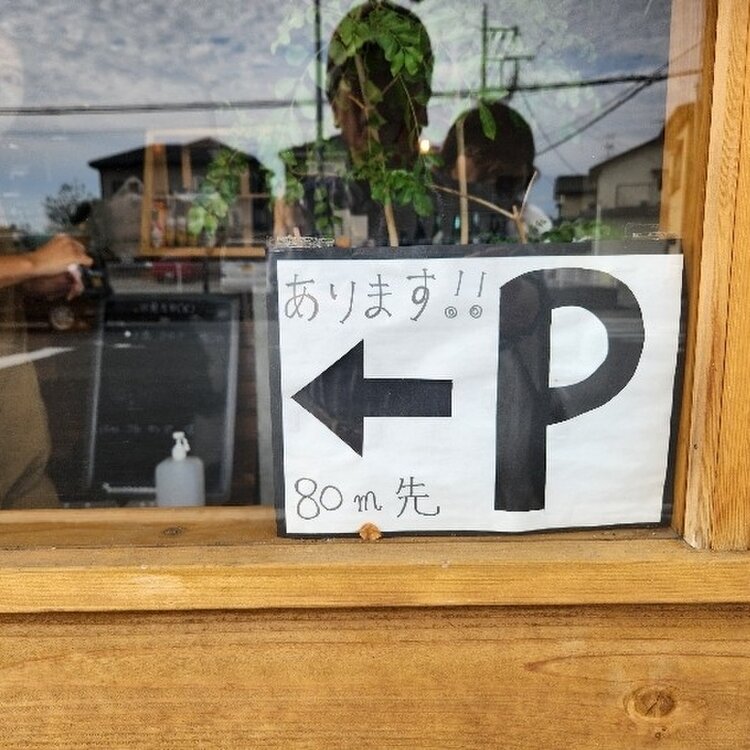 駐車場はお店の正面に向かって左側80m先にありました。薬局の手前3台分、先に7台分、合計10台分ありました。駐車スペースに店名が書いてありませんが「前向き駐車」とあれば大丈夫です。