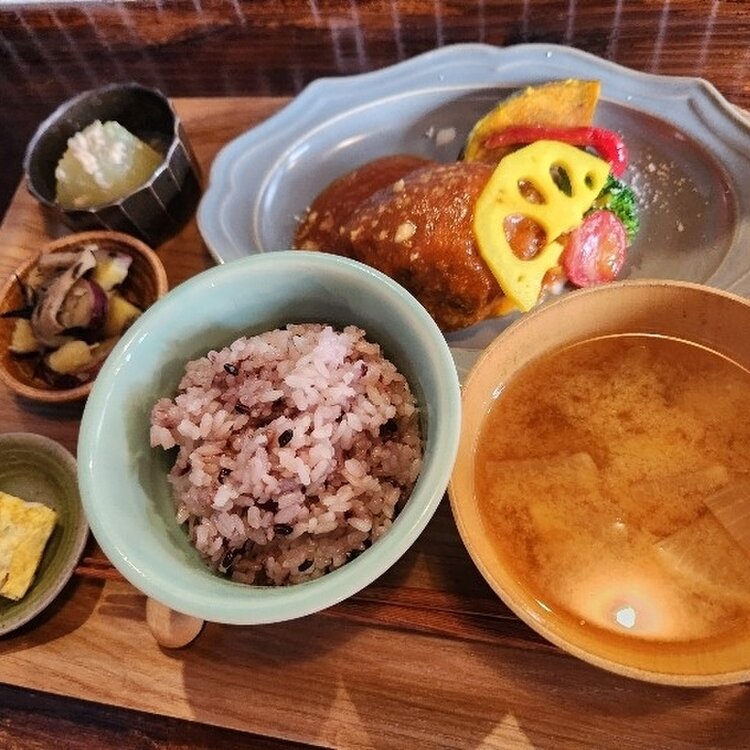ランチメニューは肉と魚をメインにした4種類で、私は魚メインの鯖のおろし煮、妻は肉メインの煮込みハンバーグをいただきました。