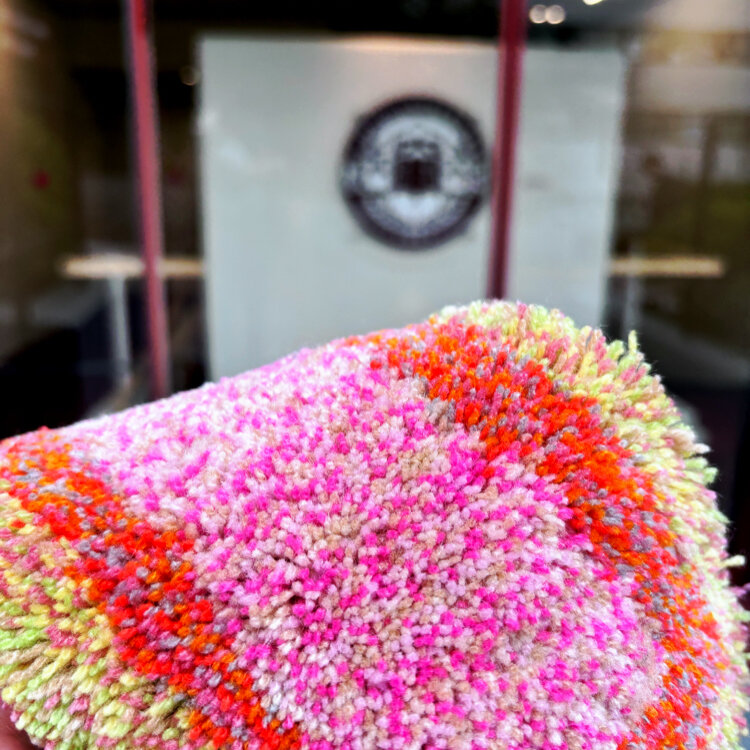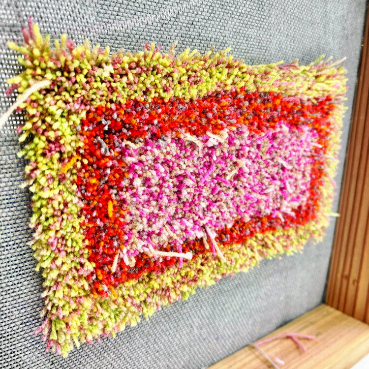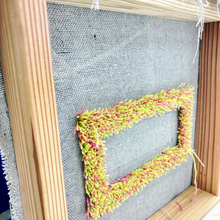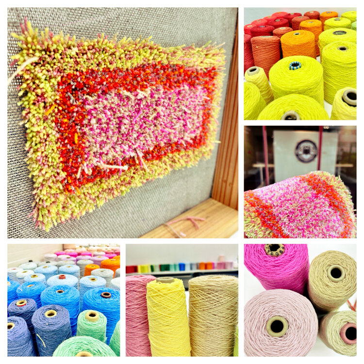 機関銃のような電動の器具を生地に押し付けて、引き金を引くと糸が打ち込まれます❣️