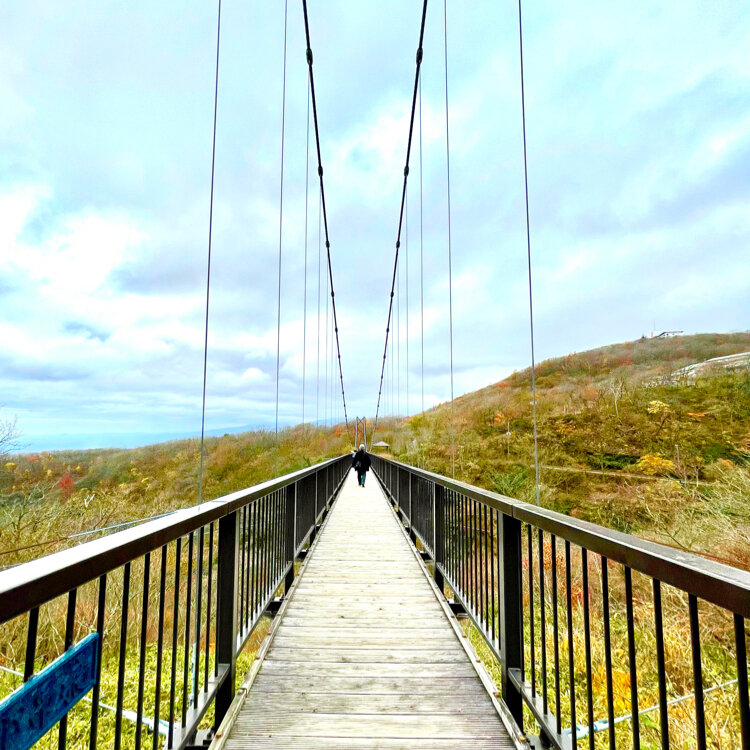 この吊り橋はそれほど高さはある方ではないけれど、真ん中が透かされているせいかやはりゾワっとはします😁