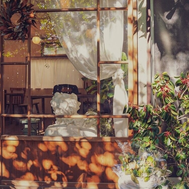 外観もこもれびに包まれて素敵なカフェ。 彫像があるのは、店主さんが美大のご出身だからかも。 #クラシカルな街 #秋の彩り