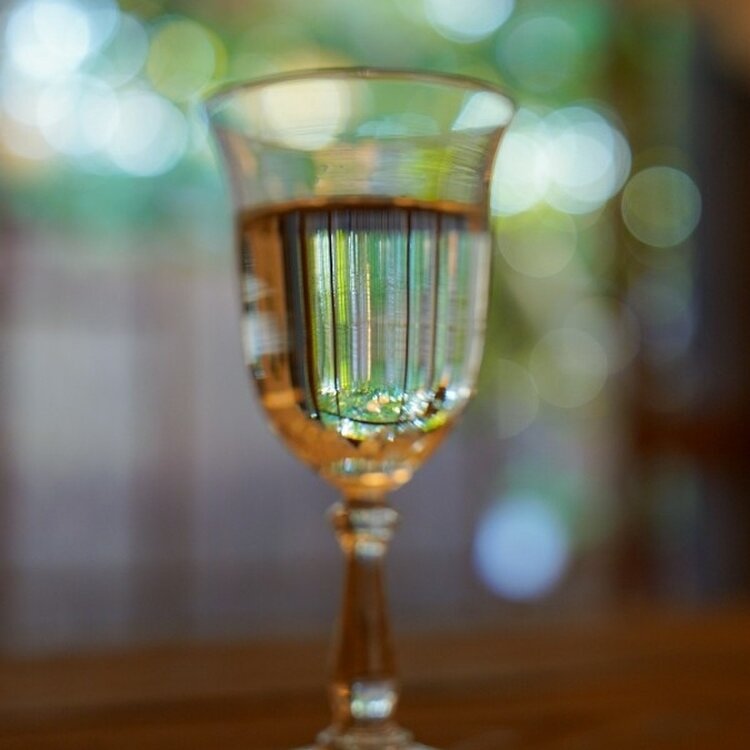 ケーキセットの後に素敵なワイングラスでお水をいただきました✨