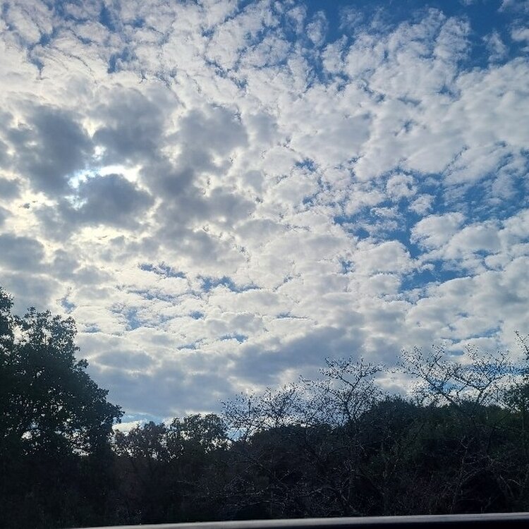 いつものファミレスでビーフシチューハンバーグ食べました‼️ 今日は雲がキレイだったので📷️ 最後はお散歩コースにあるみかんの木🍊