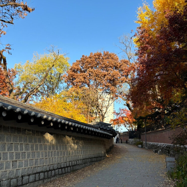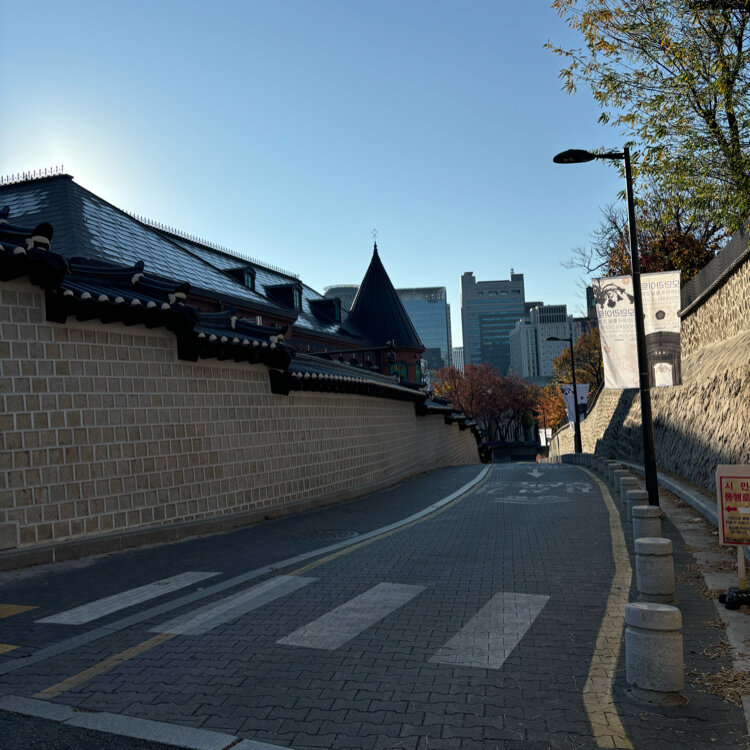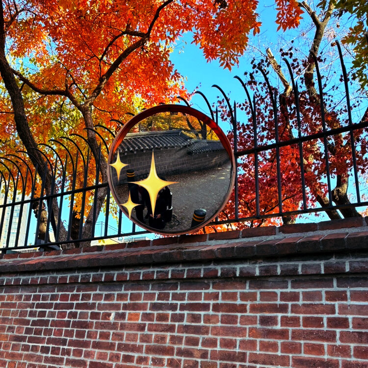 韓国旅行②日目🇰🇷 午前7時の美味しいごはんを終えて朝散歩〜🎶 近くにある徳寿宮の石垣道(トルダムキル)まで🍁 そう、韓国ドラマ〝トッケビ“のロケ地です(๑˃̵ᴗ˂̵)✨ 若い子達のマネをしてカーブミラー越しの写真(笑) 石垣と紅葉が相まってとてもキレイでした♡ #徳寿宮 #石垣道 #トルダムキル #散歩 #紅葉 #トッケビ #ロケ地 #市庁 #ソウル #韓国旅行 #20241124