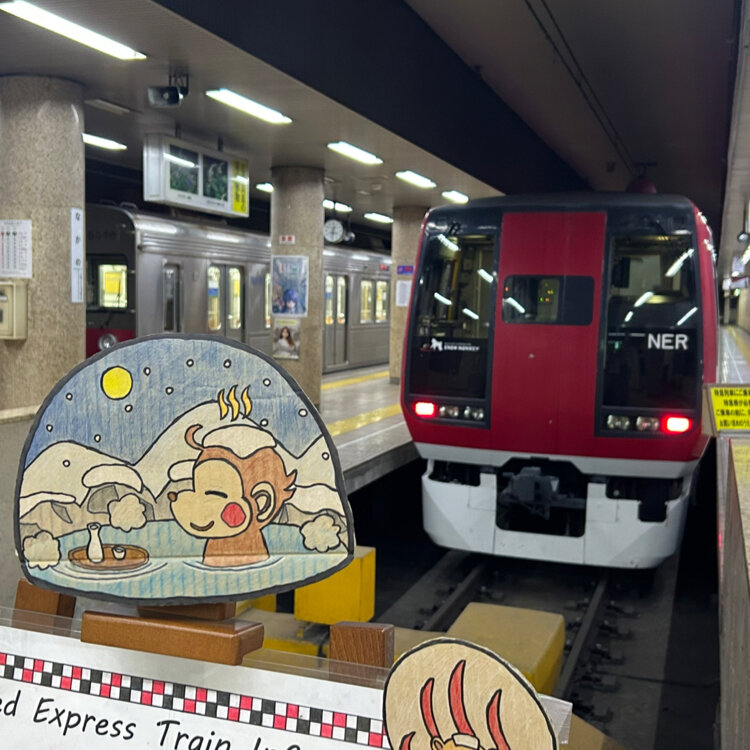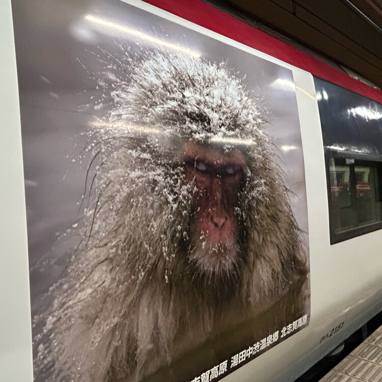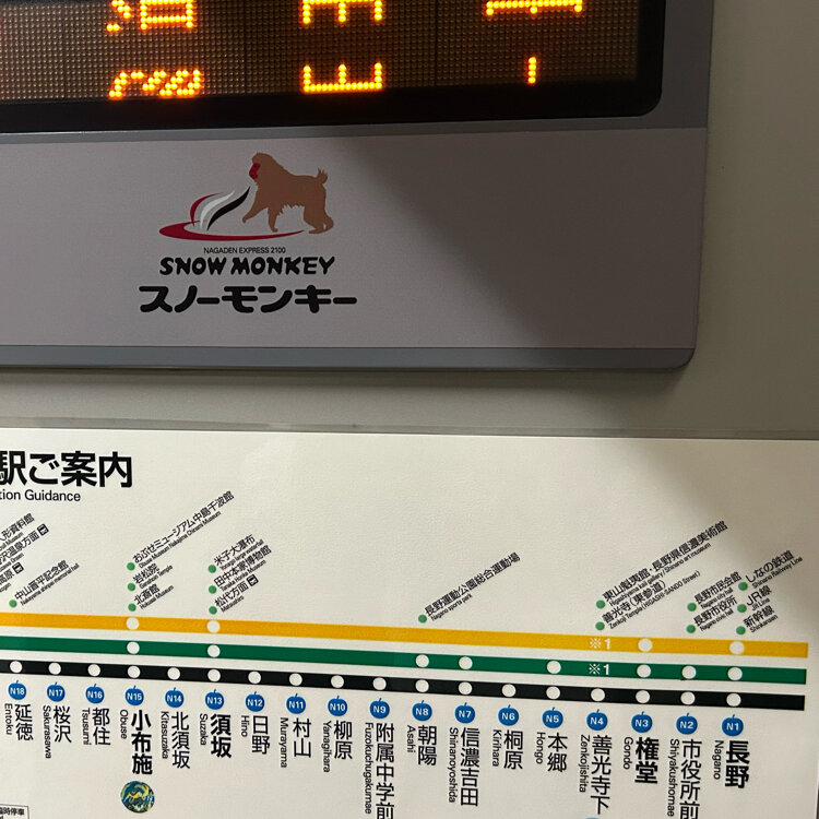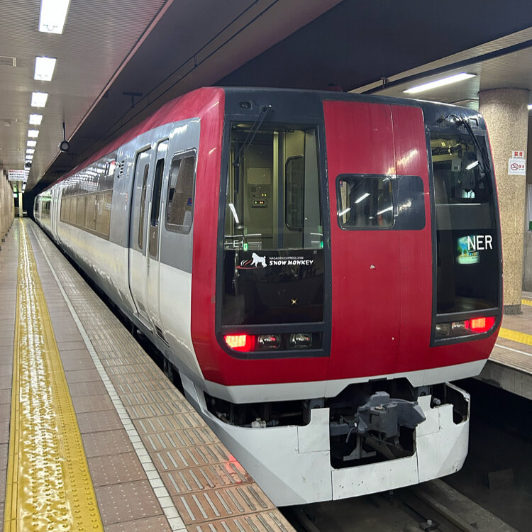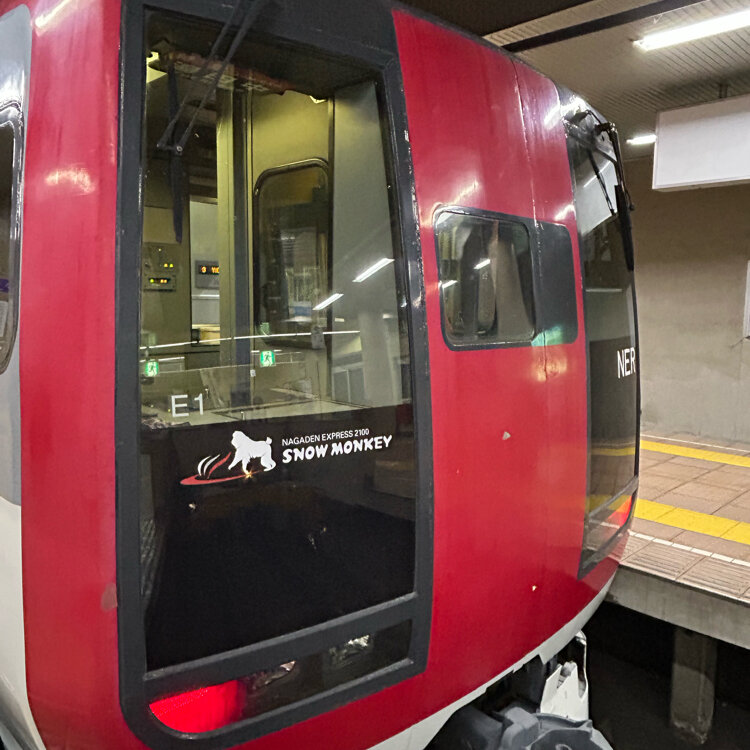 JRの特急しなので長野駅まで行ってそっからは長野電鉄で特急スノーモンキー号です🐒