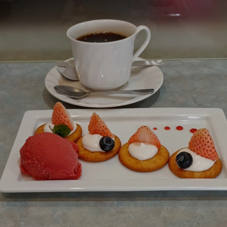 フルーツむらはた本店 尾山神社のあと、歩いてすぐの フルーツむらはた本店で一息 淡雪カナッペとコーヒー☕で休憩です フルーツパーラーむらはた本店は、1階は果物屋さん、2階はフルーツパーラー パフェも充実していて迷ったんですが ちょっと食べられないかな?と こちらにしました😏 帰り駅で圓八のあんころ餅を買い あいの風とやま鉄道の列車で帰りました 半日の気ままな金沢の旅でした 3月16日 #ちいさな列車旅 #フルーツむらはた本店 #圓八あんころ餅 #あいの風とやま鉄道