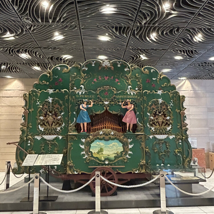 本館に入ると、巨大な人力手回しオルゴールが出迎えてくれます。