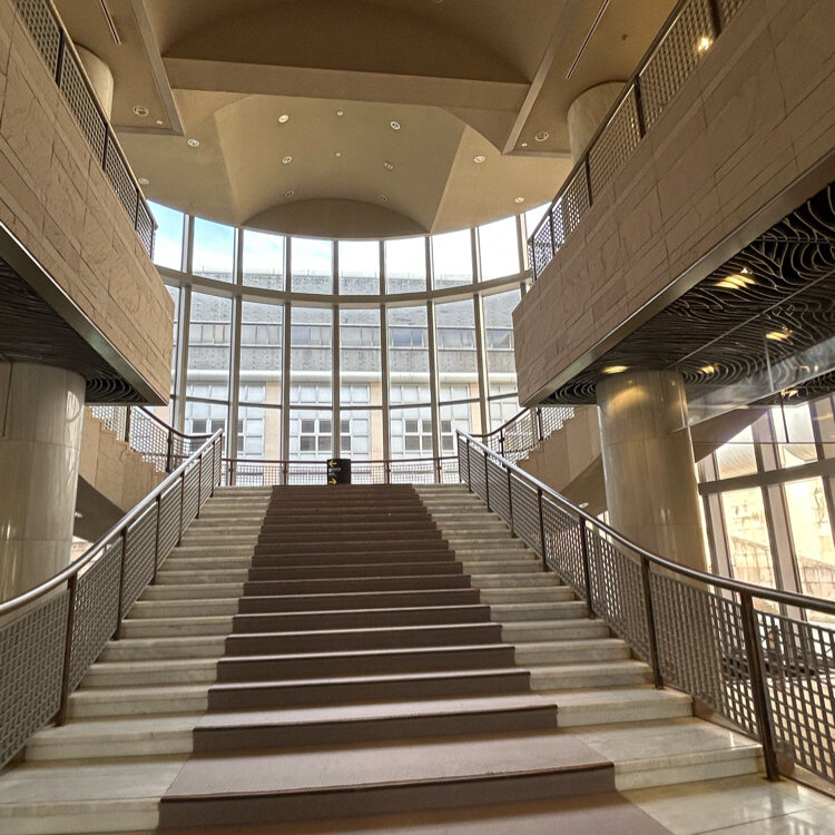 正面の階段を上がって案内板に従って、展示スペースに移動しました。