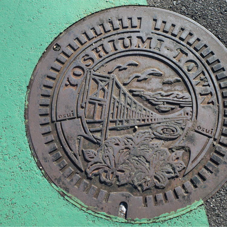 (旧吉海(よしうみ)町、来島海峡大橋と来島の潮流をデザイン)